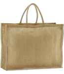 Unlaminated starched jute. Cotton carry handles (47.5cm long). Cut out label. Capacity 46 litres.